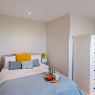 The Annexe is a standalone self-contained holiday home accessed via Bluesea View’s garden, with its own front door onto York Road. The Annexe and Bluesea View is available to rent together (sleeping 10) [View the combined listing →]. If only renting Bluesea View, The Annexe will be empty.