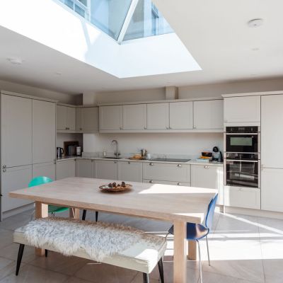 One bedroom per floor with its own bathroom means every guest has privacy and independence, while the vast skylit kitchen brings everyone back together naturally. It works brilliantly for families, groups of friends and multi-generational stays.