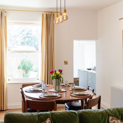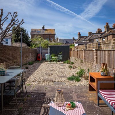 Spacious, light-filled and thoughtfully put together in a way that makes you immediately feel at home, Napier boasts an open-plan living and dining room with plush sofas, exposed brick fireplace and a large oval table that forms the generous heart of the house. A proper cook’s kitchen leads directly onto a fully enclosed rear garden with multiple spots to catch the sun.  It’s bedroom set up means everyone fits comfortably; a king master and a twin on the first floor and a lower ground floor twin that is particularly well suited to teenagers or guests who like their own space. A full shower bathroom and a seperete toilet also means no one is left queuing!  Outside of the wonderful home, Napier shouts ‘location, location, location’.  Deal’s restaurants, galleries, independant shops, Saturday market and seafront are just minutes away on foot. The train station (direct high-speed service from London St Pancras in approximately 90 minutes) is five minutes’ walk, as is Deal’s long stay car park. Once you arrive, you won’t need a car.