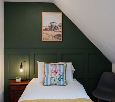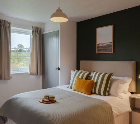 The Dairy is one of five beautifully styled holiday homes nestled within a striking converted Kentish barn at the historic and private Reach Court Farm estate.  Each home is thoughtfully decorated with its own character, yet all offer the same sense of peace, comfort, and connection to nature.  With exposed beams, brick walls and a soft farmhouse setting, The Dairy offers a cosy character rich retreat for families or small groups looking to relax, explore and reconnect.  Inside, the open plan living area is full of character.  There’s comfortable sofas and a smart TV for recharge evenings in, a fully equipped kitchen and a dining table perfect for catching up over slow breakfasts or games after a day exploring. The bedrooms are peaceful and inviting, with comfortable beds dressed in crisp white linen,  promising restful nights sleep under the dark countryside skies. Horses graze just beyond the windows, birdsong fills the air and the landscape invites you to reconnect with the natural rhythm of nature.  In fact, the location is one of The Dairy’s true delights.  Tucked away at the end of a long hedge-lined private road and set on a pristinely manicured private farm, you feel wonderfully removed from the rush of the world. Right from the lavender edged front door, footpaths lead straight into the rolling Kent countryside.  Wander the infamous White Cliffs, scenic walking routes to Dover and Deal or shingle cove at St Margarets Bay. The Dairy is made for slow mornings, coastal exploring days and recharge nights, offering time and space to unwind.