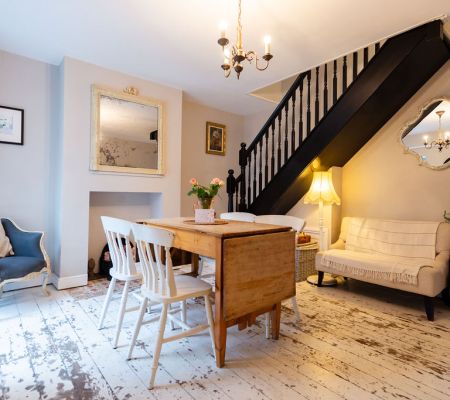 Set on a peaceful street just minutes from Deal’s train station and award-winning high street, The House in Deal is a chic townhouse that effortlessly combines classic character with contemporary ease. Inside, light spills across whitewashed floorboards, vintage-style fireplaces and soft pastel accents, creating a space that feels warm, elegant and calm.  The generous dining area sets the scene for long breakfasts, evening catch-ups and laughter over a nostalgic game or two – or drift to the adjoining lounge to sink into the sofa for a quiet, relaxing evening in.  Upstairs, two stylish bedrooms offer peaceful retreats, each with layered linens, soft lighting and hints of heritage charm. Outside, a small courtyard garden with table and chairs provides the perfect spot for a morning coffee or an alfresco glass of rosé.  Every detail here is designed for easy, grown-up getaways – chic yet relaxed, tucked away yet close to everything that makes Deal special: independent shops, beachside cafés and long walks along the shoreline.